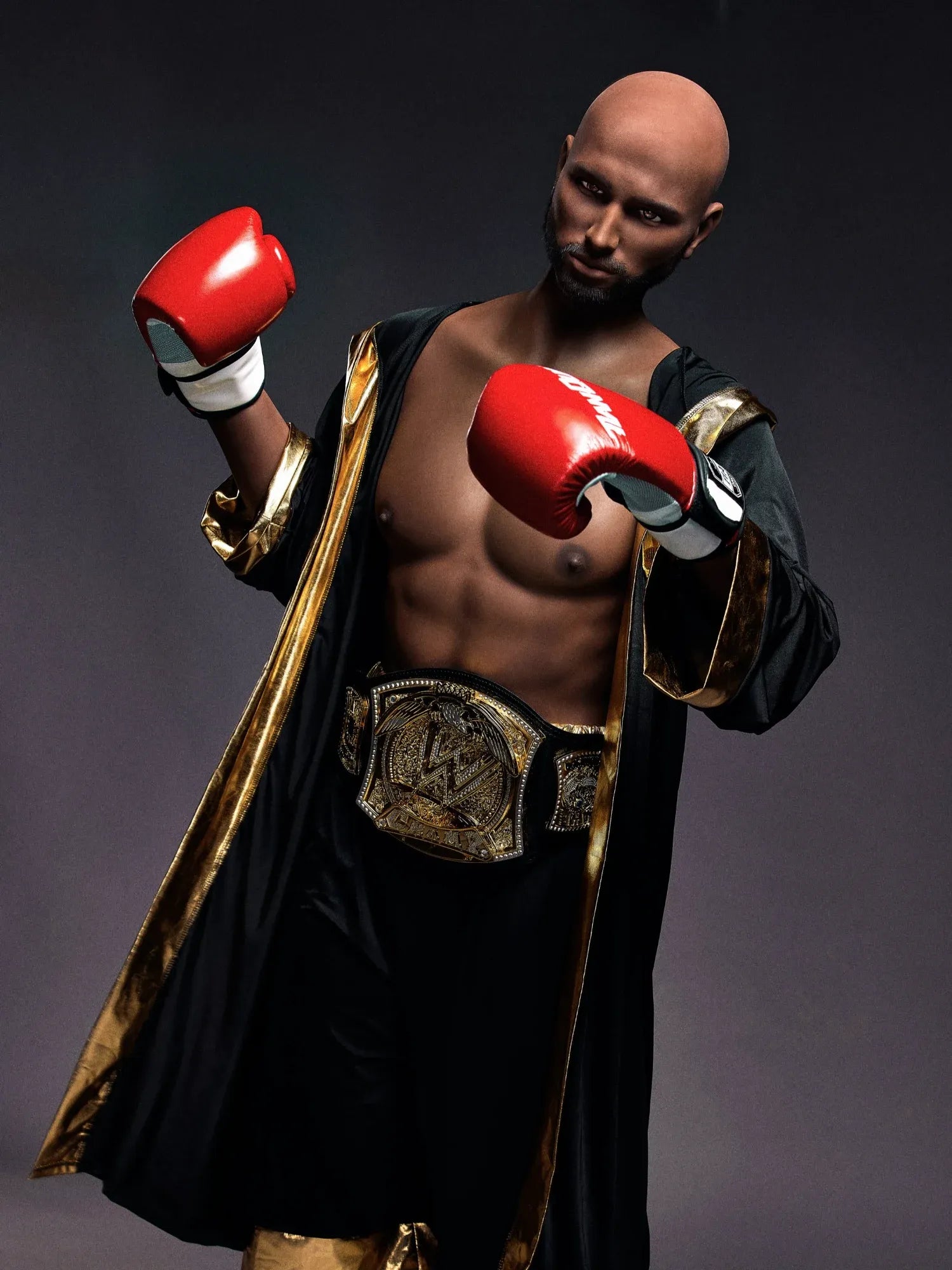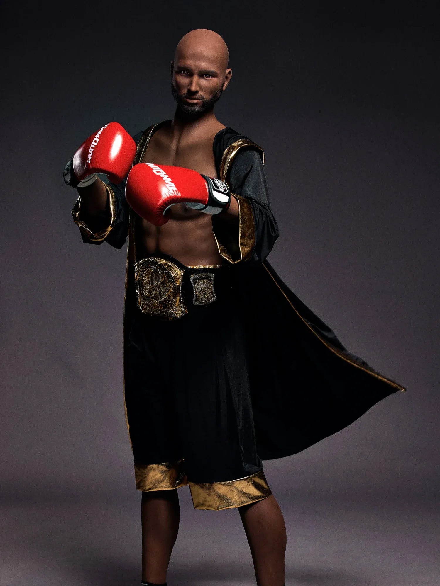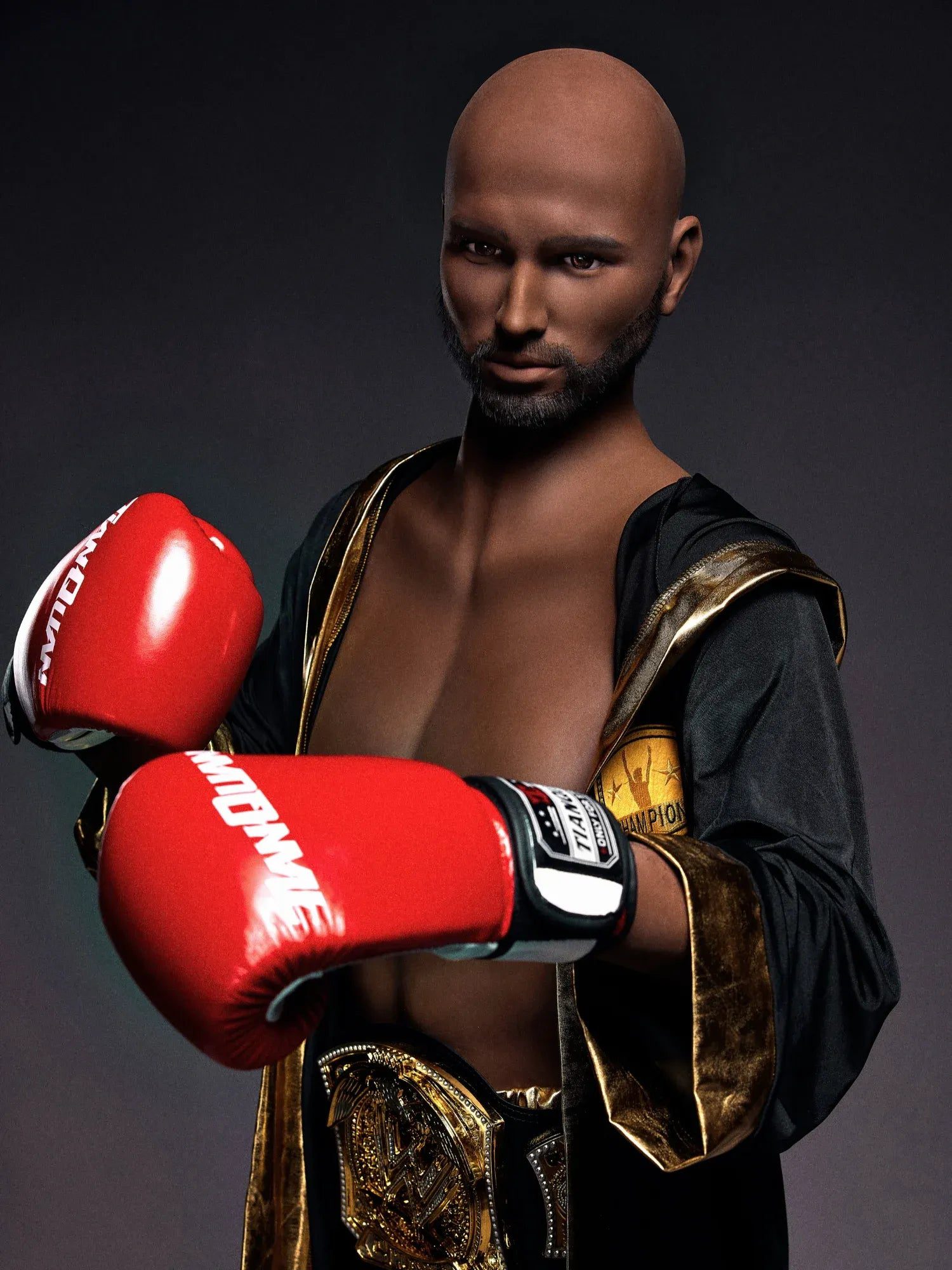 Do you have a thing for powerful men? This boxing male sex doll is so powerful that it looks and acts like a grown man. Sexy short black beard. small deep eyes. very attractive. Eight attractive abs protrude under the vast pectoral muscles. and dark skin is sweaty. His inner strength is no less potent than his outer strength. He can make you reach orgasm without losing energy. be ready to serve you again and make you experience N times more happiness.