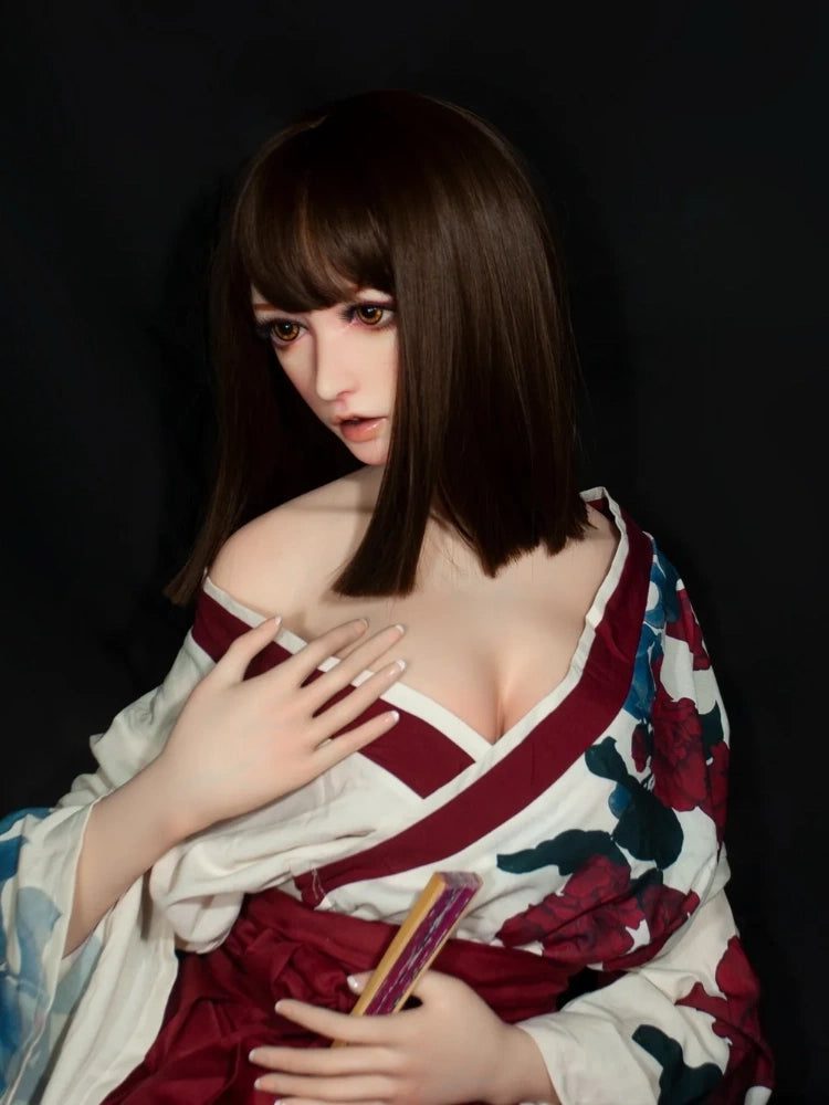 Experience true seduction with F1546-Elsa Babe. the ultimate pleasure companion standing at 165cm. This full silicone sex doll is adorned in a beautiful and intricately designed traditional Japanese kimono. Indulge in your deepest desires with this exotic and alluring Anime-inspired doll.