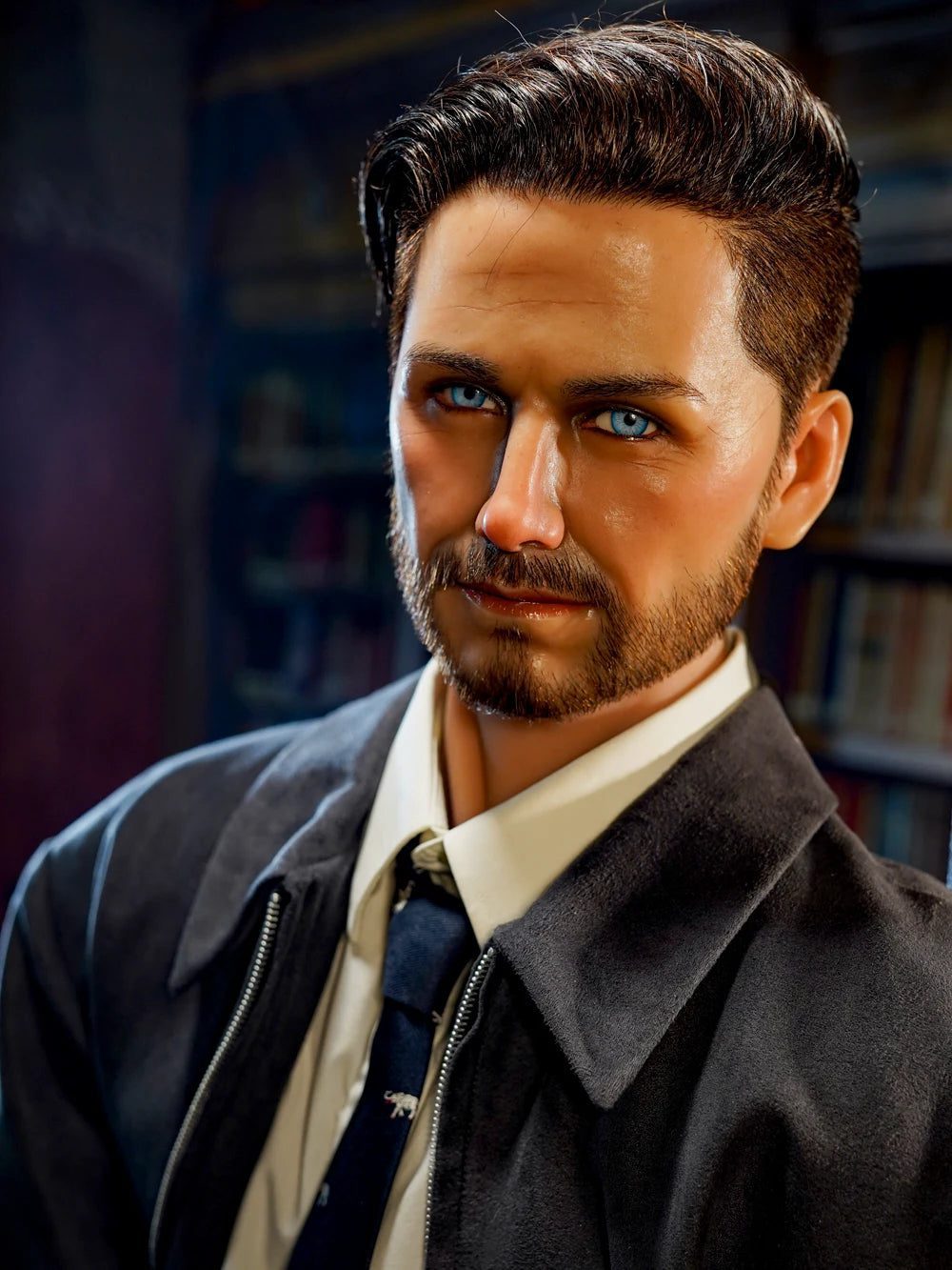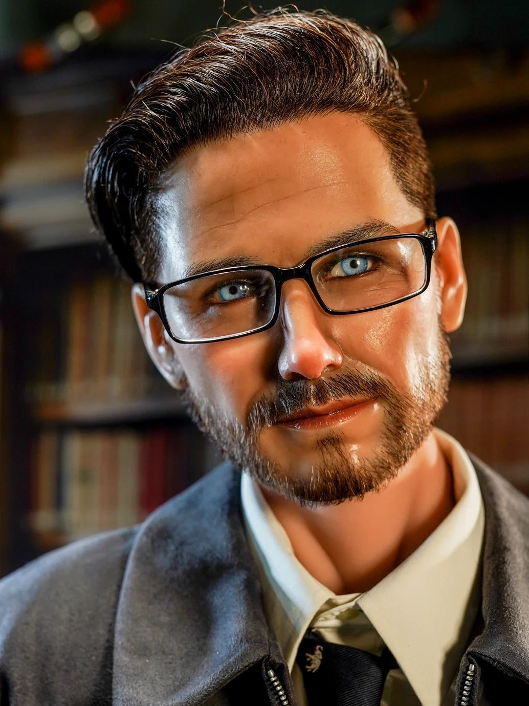 This gentle daddy with his beard and glasses has the perfect combination of sophistication and sex appeal. His well-trimmed beard and deep gaze behind his lenses reveal an air of gentleness and reliability. His muscular lines. on the other hand. give him a strong manly power. making him calm yet powerful in his composure. Every movement exudes confidence and calmness. as if he can give you an endless sense of security and dependence. If you like a mature male figure that is both gentle and powerful. this doll will be an irresistible choice for you. Every time you look at him. you will feel the unique charm of a mature man. as if falling into his embrace. both at ease and heart racing.