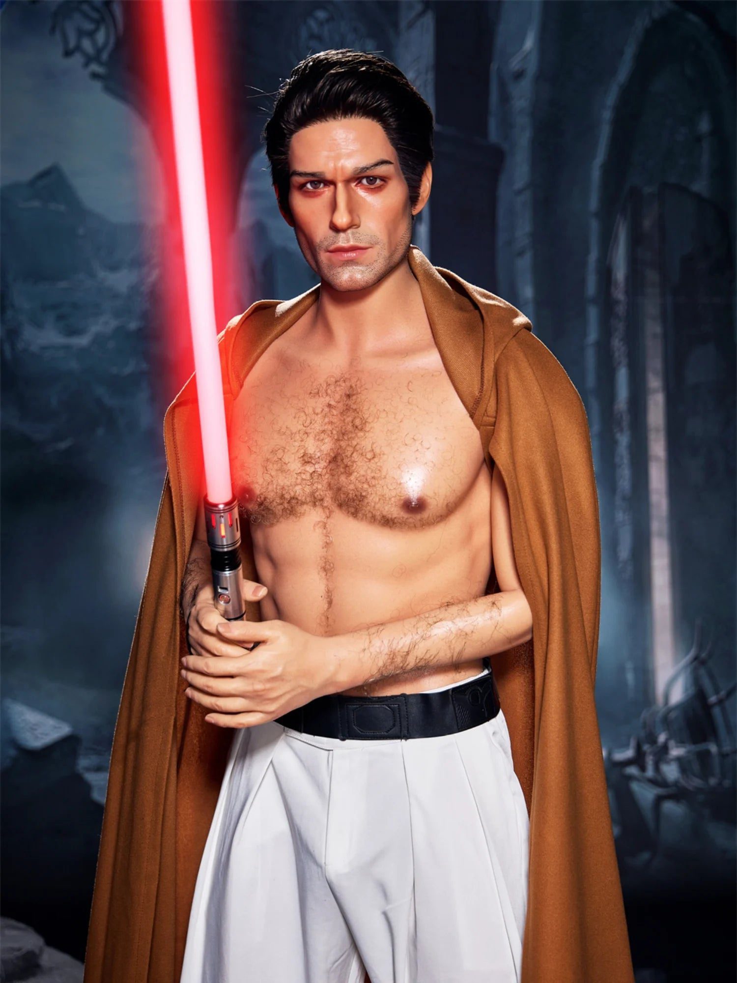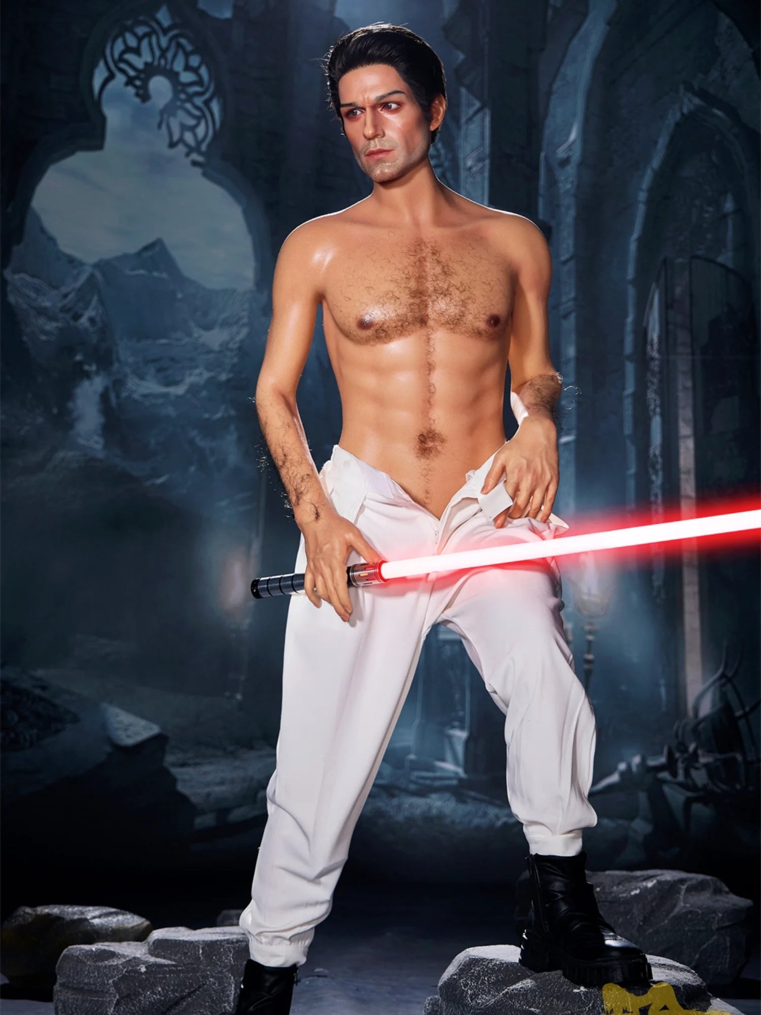He has deep eyebrows and delicate facial features. and the slightly grown beard adds a bit of mature charm to the whole. As a full body male sex doll. he is 170cm tall. with a straight figure and a resolute expression exuding strong male hormones. His eyes. as if ready to explore the unknown world at any time. and the light stick in his hand form a picture full of adventure. He is the most handsome adventurer in your fantasy and the warmest companion at midnight.