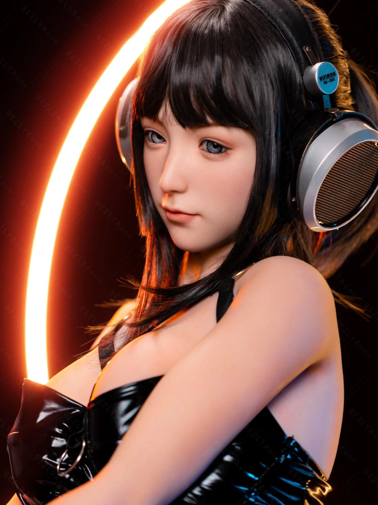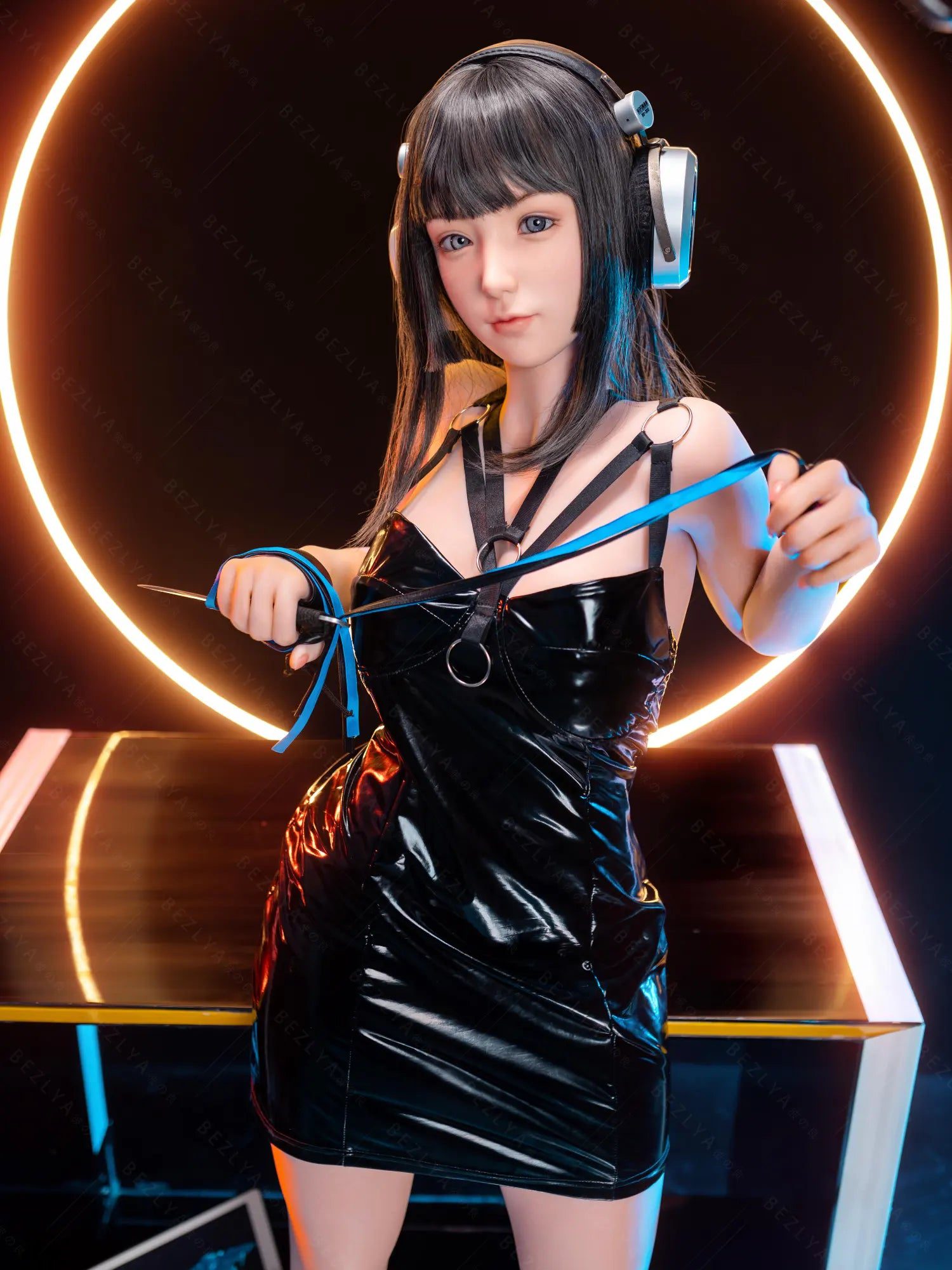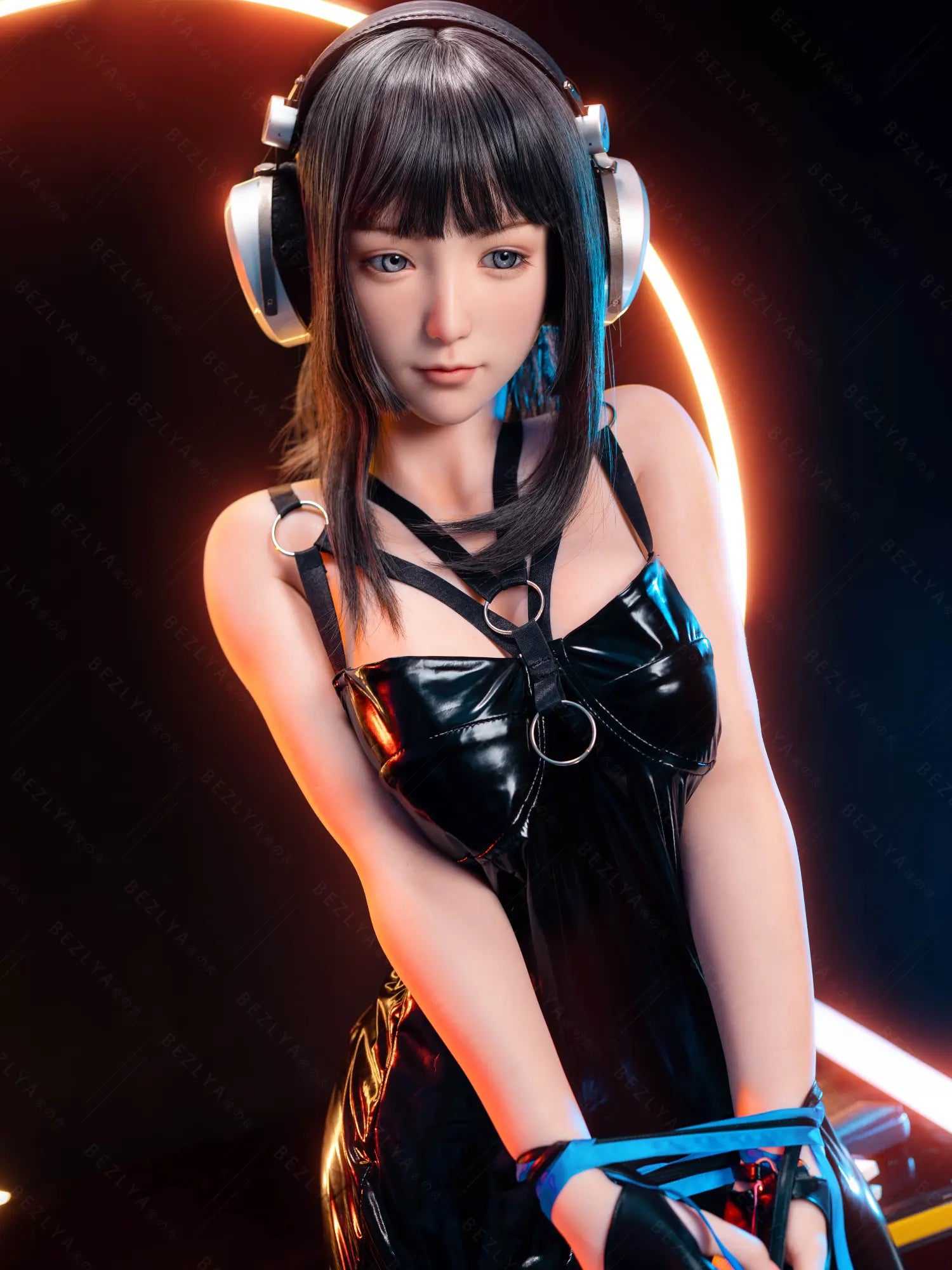 This Silicone Sex Doll combines captivating beauty and remarkable craftsmanship. Standing at 155cm tall and weighing 38kg. her proportions are perfectly sculpted for maximum allure—an 80cm full bust. a 54cm slender waist. and 83cm hips that highlight her feminine curves. Her silky black shoulder-length hair frames her face. contrasting with her striking light blue eyes that seem to pierce through you. Crafted from high-quality silicone. she feels incredibly lifelike. with a soft. smooth texture that mimics real skin. providing an authentic touch that makes every interaction unforgettable.
