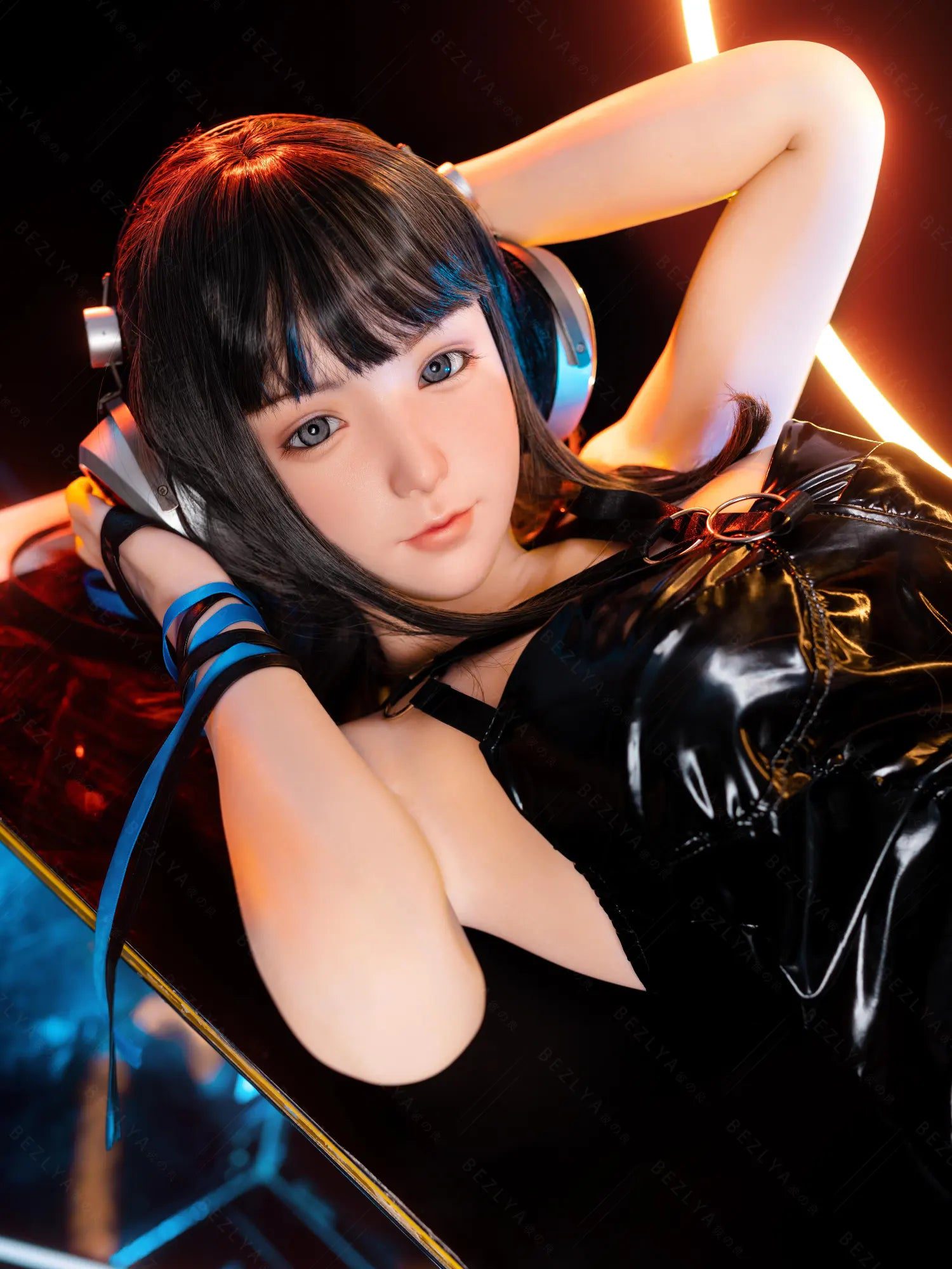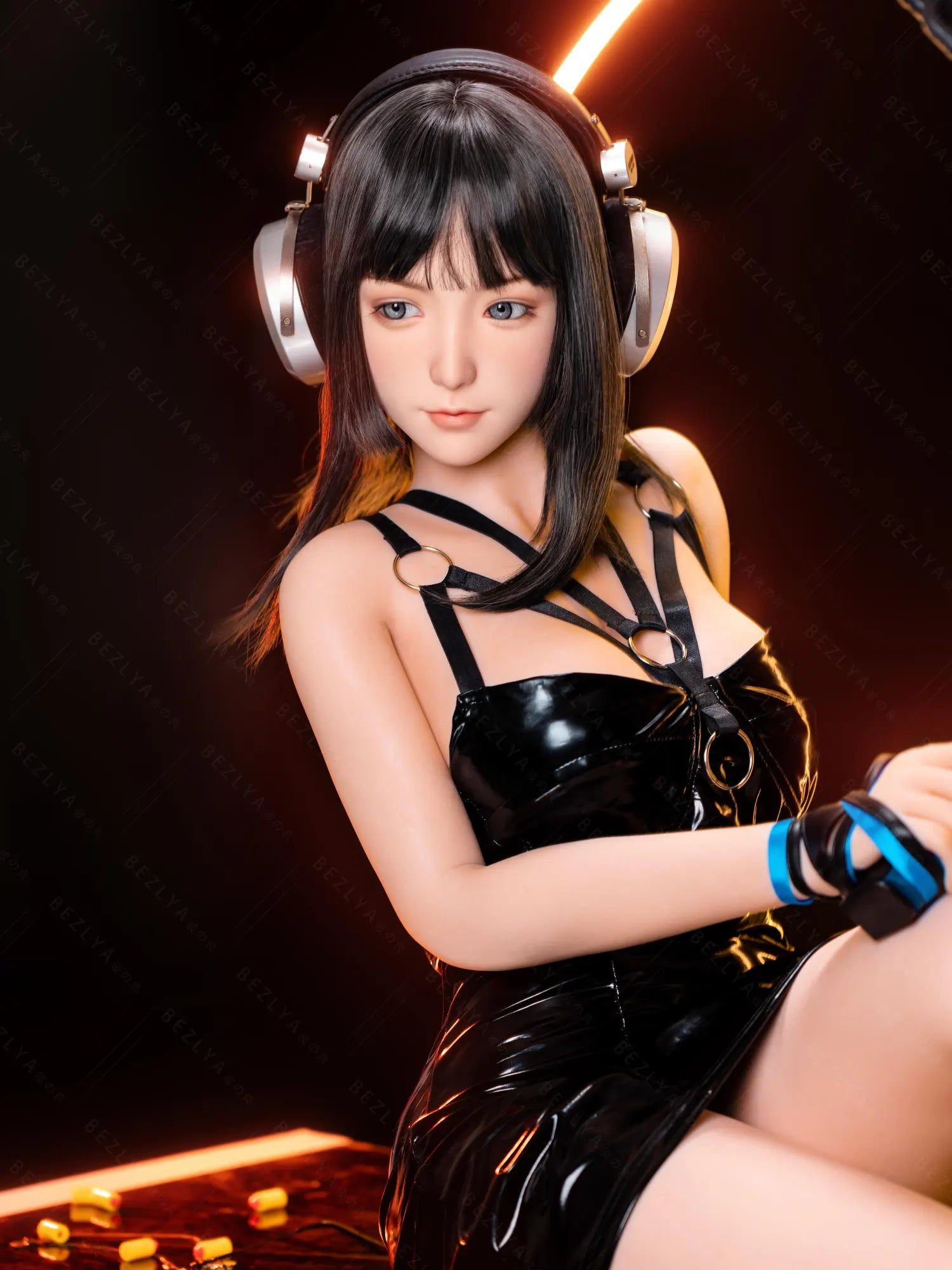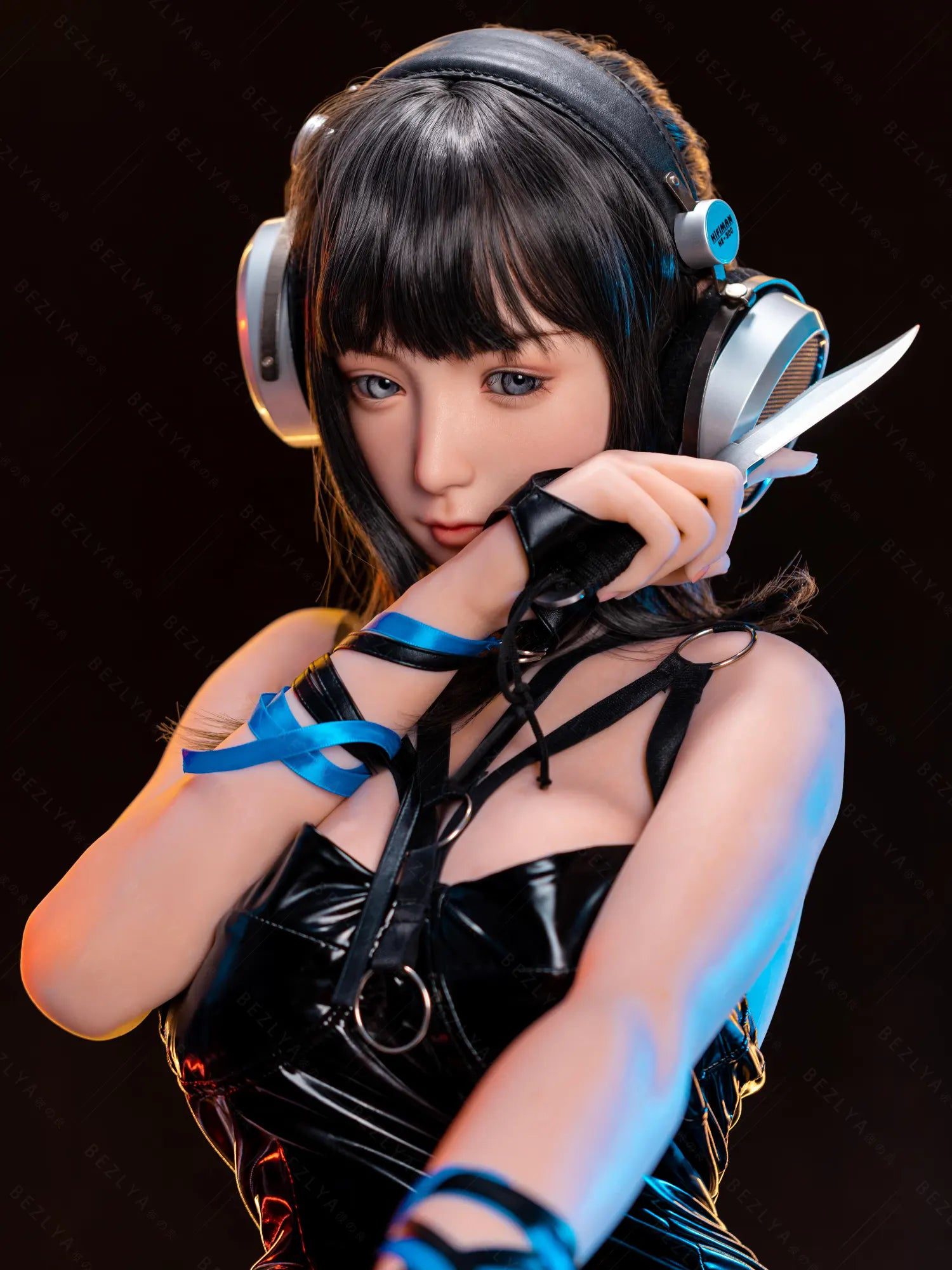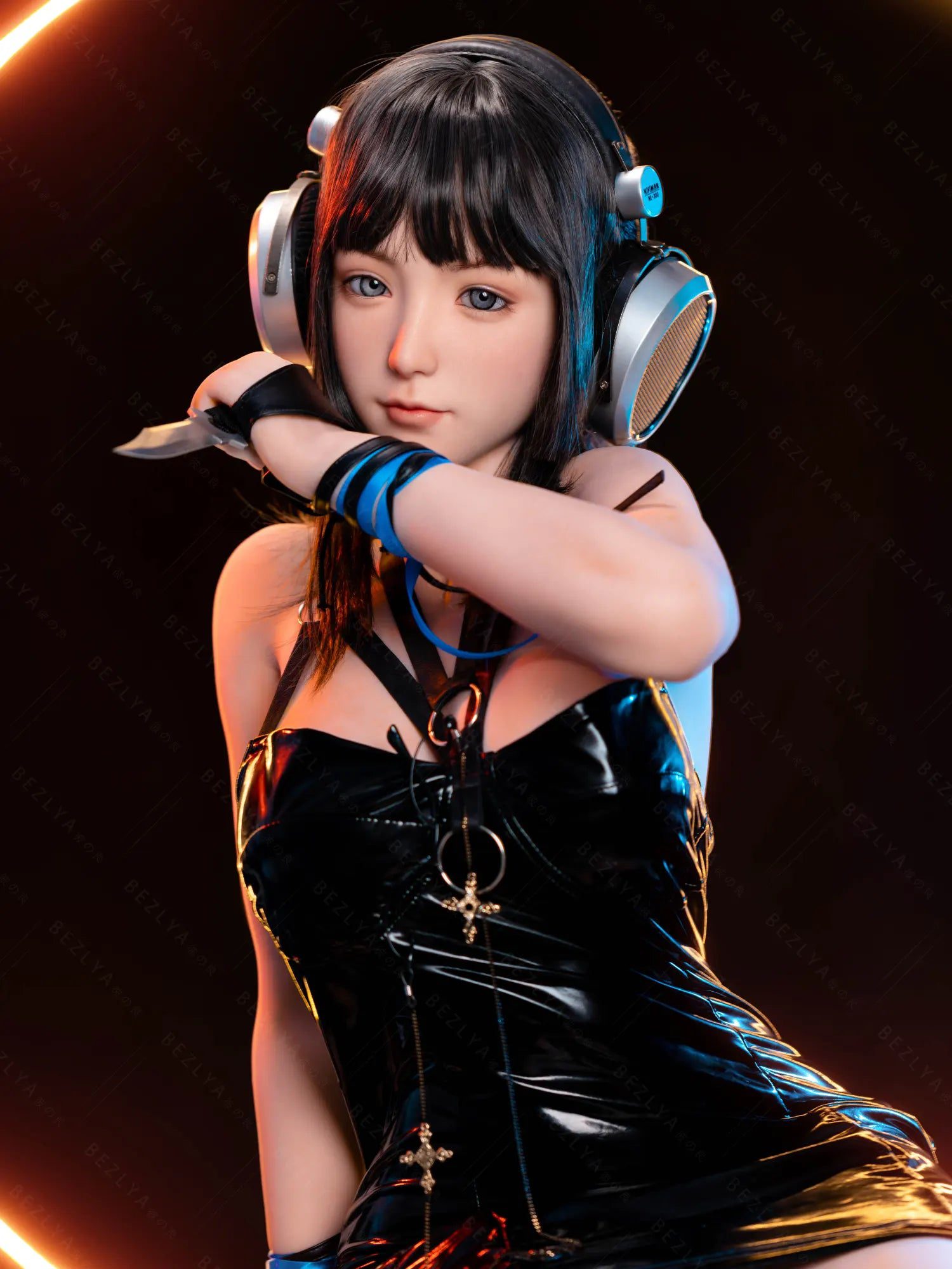 This Silicone Sex Doll combines captivating beauty and remarkable craftsmanship. Standing at 155cm tall and weighing 38kg. her proportions are perfectly sculpted for maximum allure—an 80cm full bust. a 54cm slender waist. and 83cm hips that highlight her feminine curves. Her silky black shoulder-length hair frames her face. contrasting with her striking light blue eyes that seem to pierce through you. Crafted from high-quality silicone. she feels incredibly lifelike. with a soft. smooth texture that mimics real skin. providing an authentic touch that makes every interaction unforgettable.
