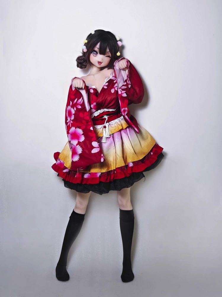 This cute and charming anime sex doll has a low bun. exuding a fresh and playful temperament. She wears a unique Japanese kimono. which is exquisitely designed and unique in style. especially the display of big breasts. which adds a bit of seductive charm. Her overall styling and clothing are undoubtedly full of attraction and leave a deep impression.