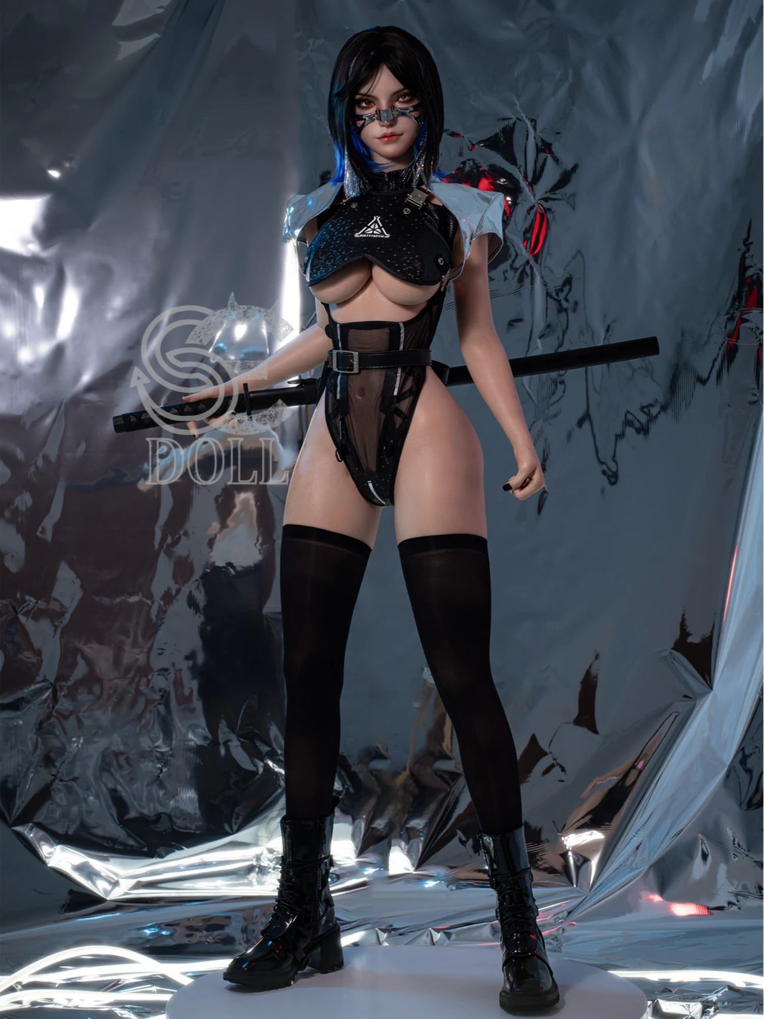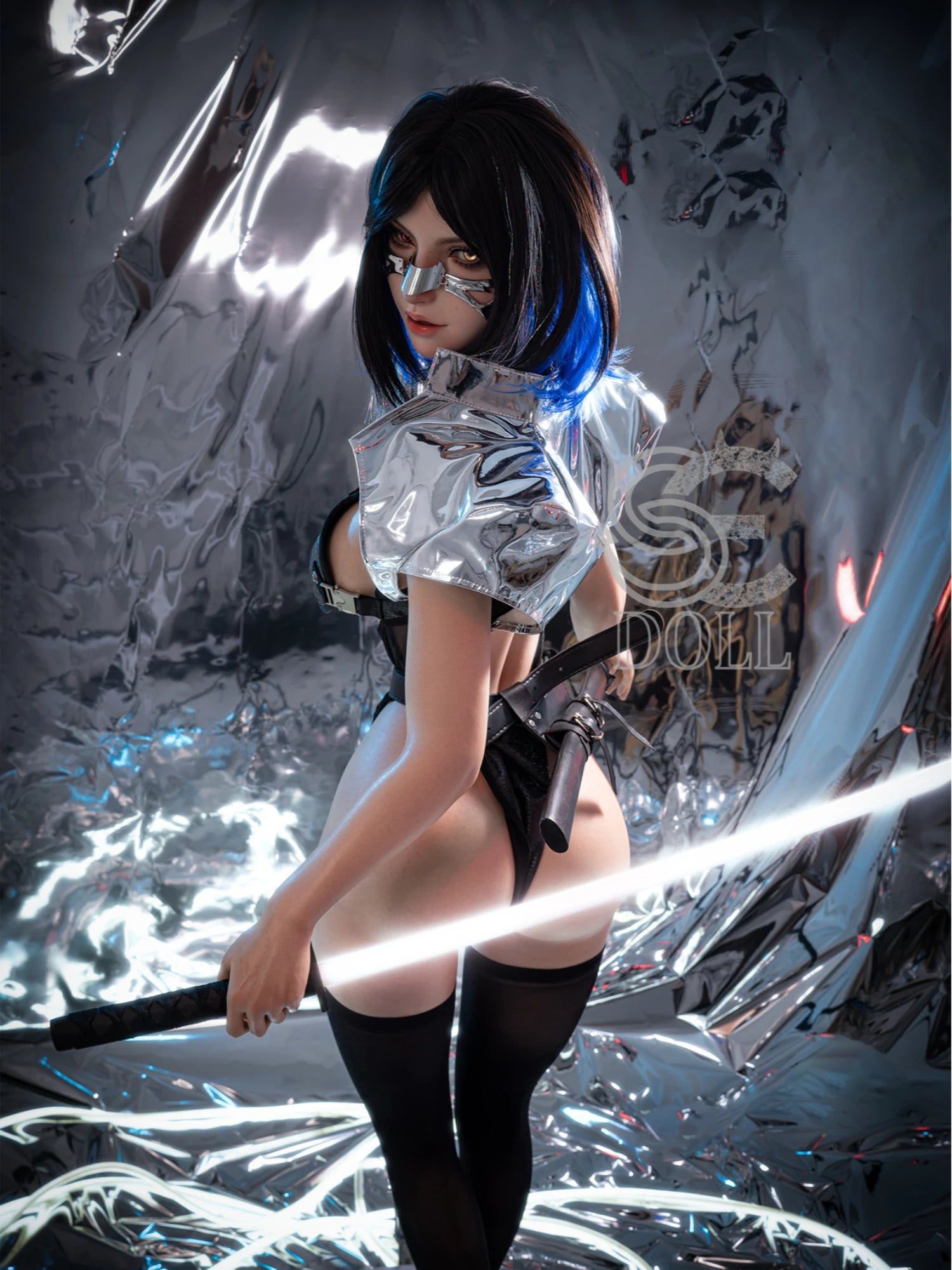 Lock eyes with F5615—an ai sex doll who turns heads with midnight-black hair. a futuristic metal mask. and hypnotic heterochromatic eyes . Her 161cm silicone body? Perfectly curved with E Cup softness that feels incredible under your hands. The mask adds a spicy sci-fi edge—like she stepped out of your wildest anime dream. She’s not just a doll; she’s a sex dolls ai masterpiece designed to make your heart race before you even touch her.