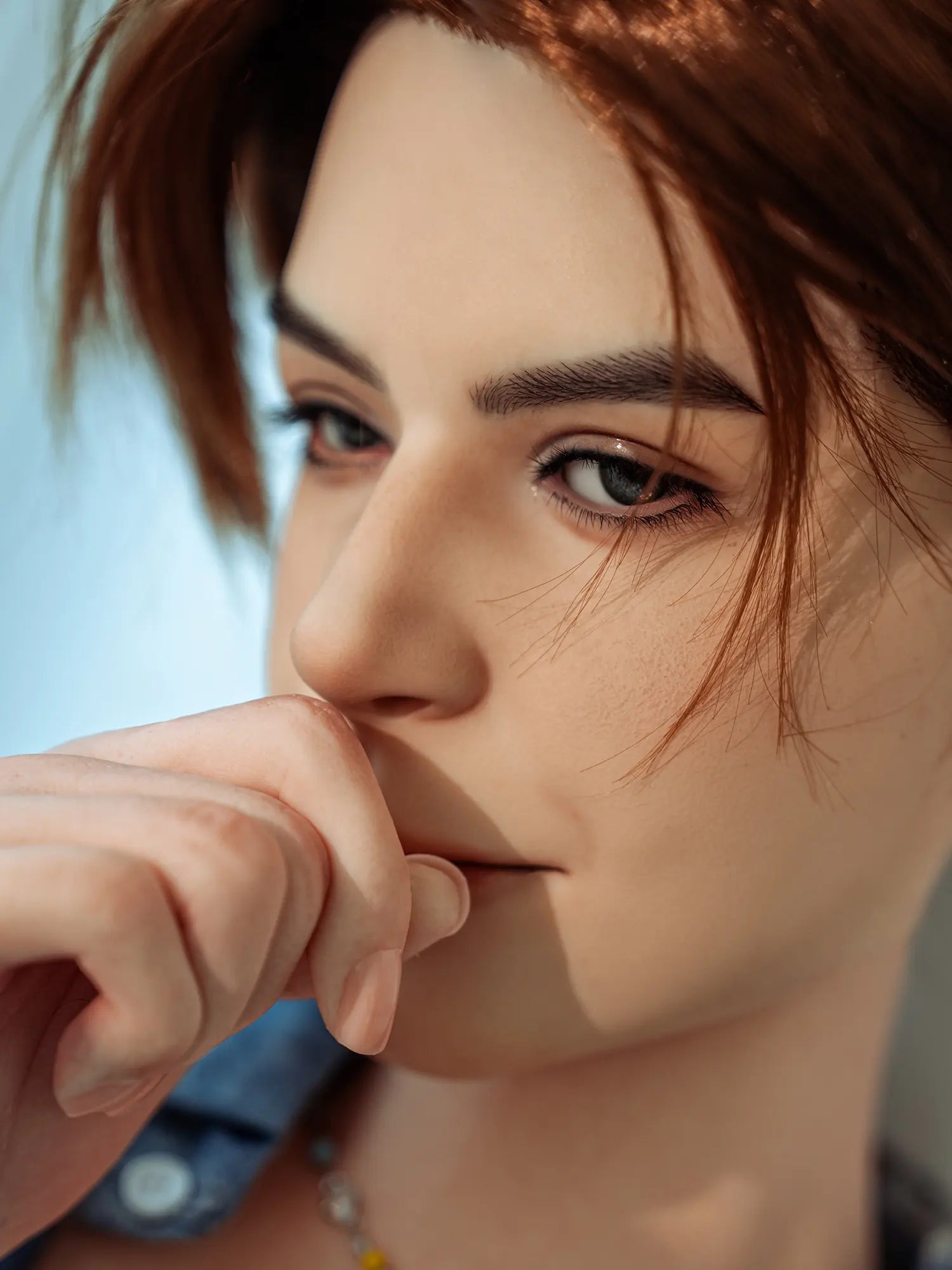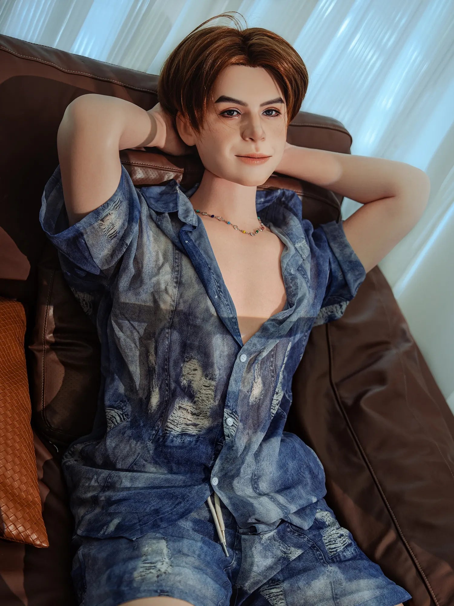 The F5703-160cm-45.5kg robot male sex doll made a stunning appearance with short brown hair and a warm smile. He seemed like an idol from a pop group. with deep and three-dimensional facial features. charming eyes. and a denim jacket with shorts to add youthful vitality. Whether it is a dazzling star on the stage or an exclusive partner in private time. he can perfectly replicate your ideal type in your heart with the charm of a celebrity male sex doll and satisfy all your fantasies about a perfect partner.