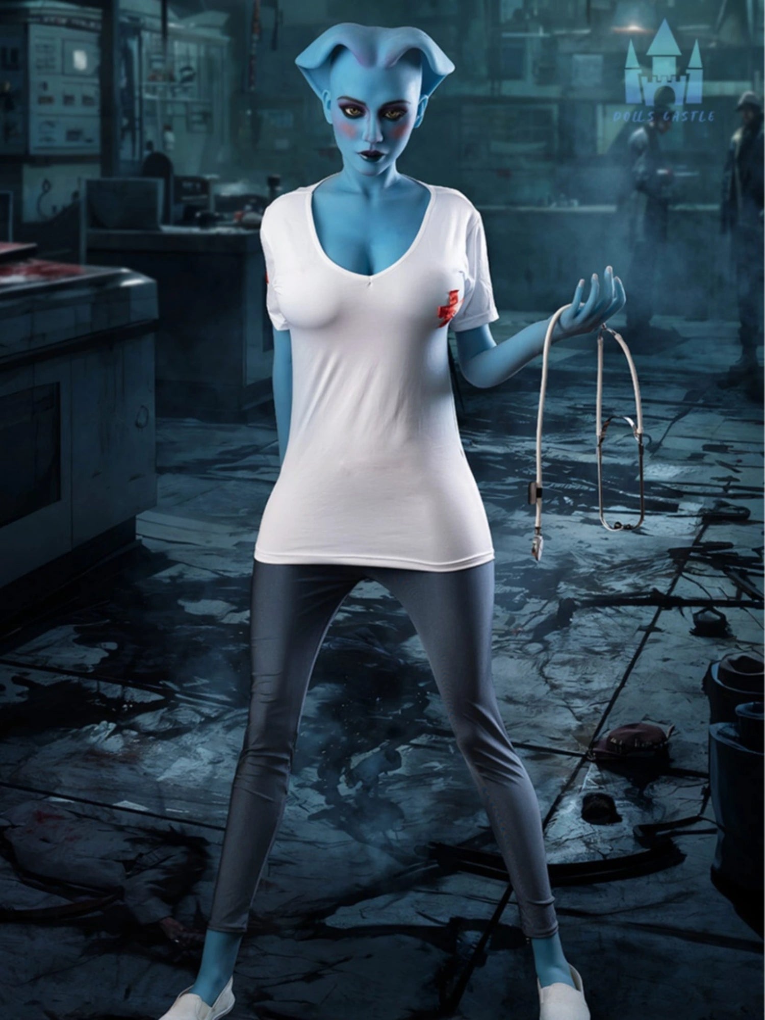 Step into a world of otherworldly allure with our F7065 alien sex doll. who dons a striking nurse outfit that perfectly blends science fiction and fantasy. Her mesmerizing blue alien skin. reminiscent of the deepest corners of the universe. is complemented by a headpiece shaped like wavy mushroom caps—a design that’s as unique as it is captivating. This isn’t just a doll; it’s a portal to a realm where your wildest fantasies can come alive.