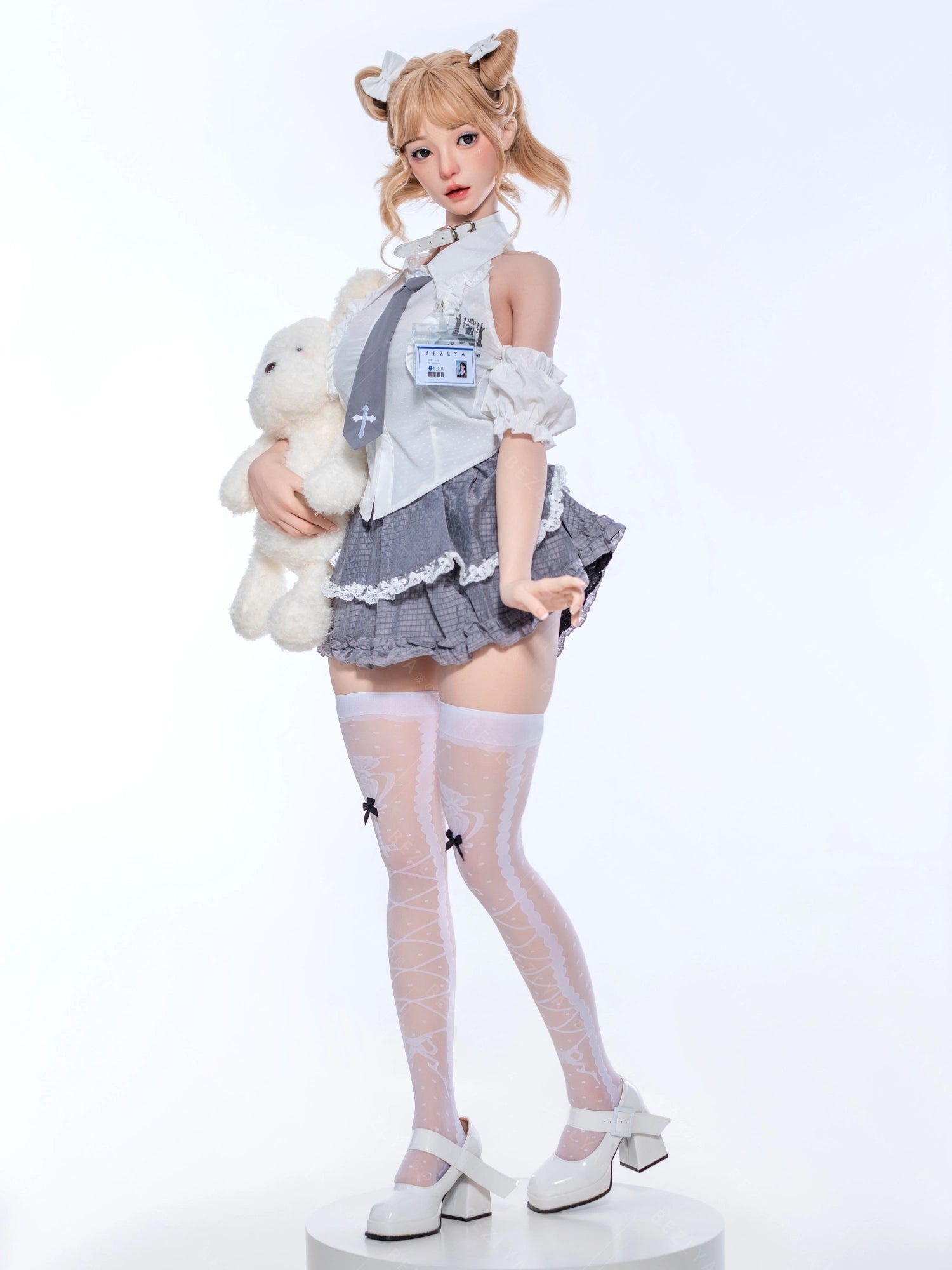 Standing at just 155 cm (5ft 1in) and weighing a delicate 38 kg. this young sex doll is a dreamy vision of Japanese innocence and allure. With soft. kissable E-cup breasts. smooth curves. blushing face. she looks like a real-life anime fantasy. Her skin is made of premium platinum silicone—velvety to the touch yet durable for long-term pleasure. Holding a soft white teddy bear close to her chest. she radiates youthful charm and irresistible cuteness. Every detail. from her lush lips to the sculpted waist. has been crafted to fulfill your softest desires.